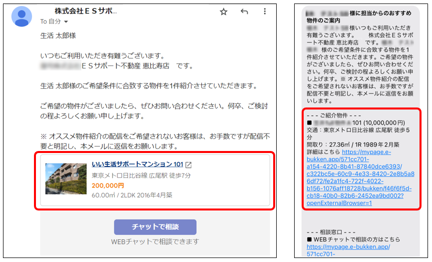 テキスト形式の場合、以下画像右のように物件情報はテキストのみで表示されますが
