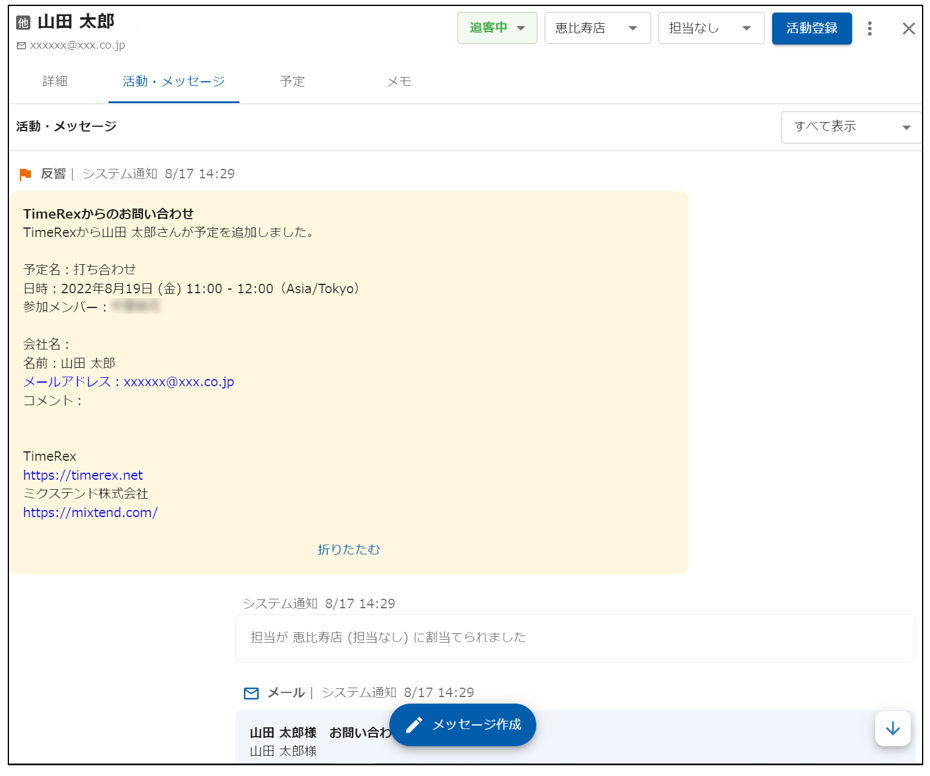 本ページでは、「TimeRex」のカスタムメール取込を利用した