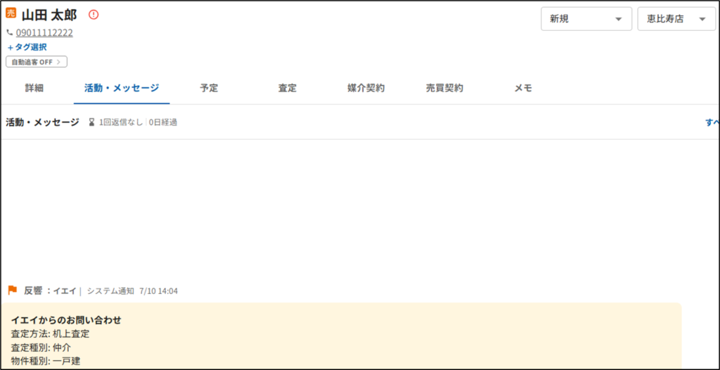 本ページでは、追客種別「売」の「イエイ」のカスタムメール取込を利用した