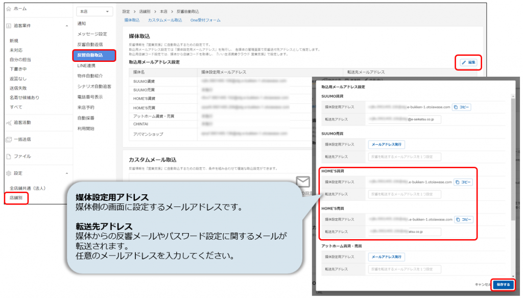 本ページでは、LIFULL HOME'S(賃貸・売買)の反響取込を開始するまでの設定手順をご案内いたします。