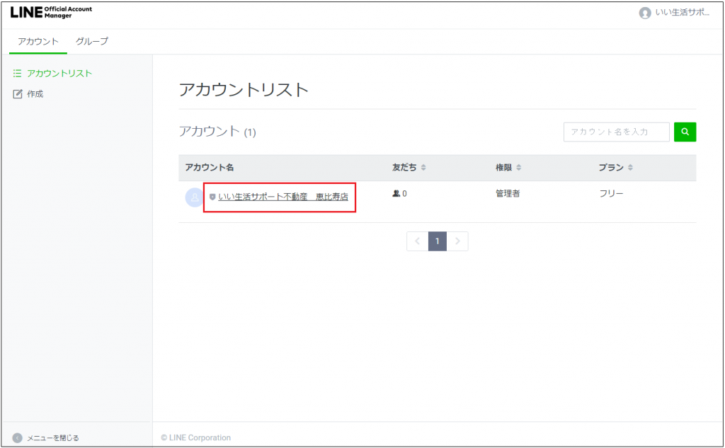 ビジネスアカウントでログイン後、連携させたいアカウントを選択します。
