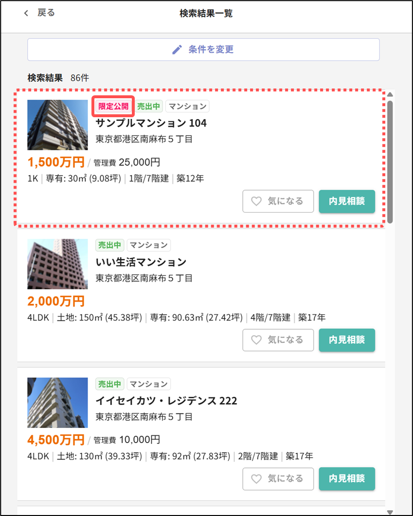 お客様マイページ限定で特定の売買物件を公開していただくことができます。