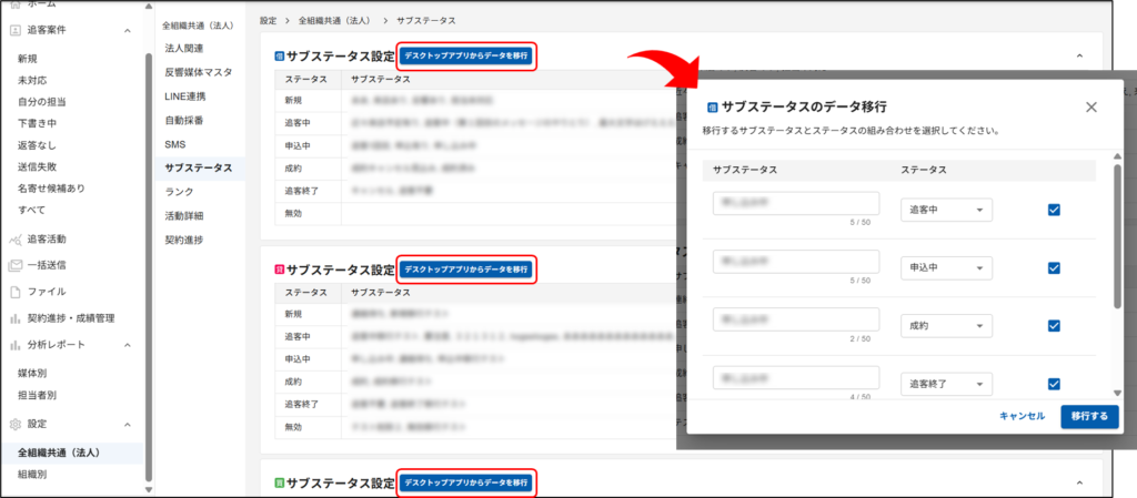 サブステータスもデータ移行で簡単に登録することができます。