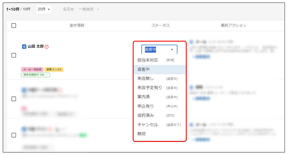 自社の運用に合わせて追客案件を管理しやすくなります。