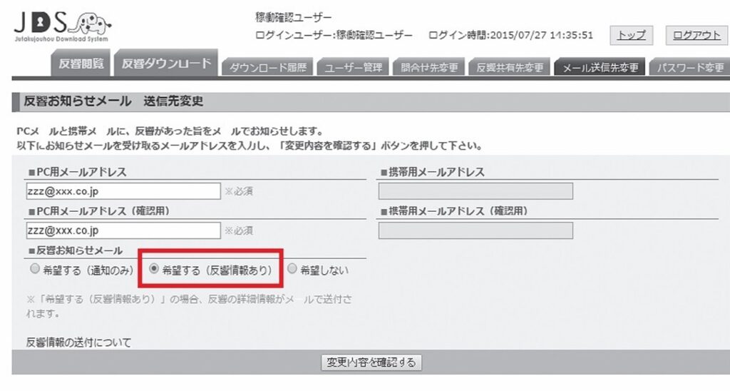 JDS側で反響お知らせメール「希望する(反響情報あり)」から「希望する(通知のみ)」に自動で変更されます。