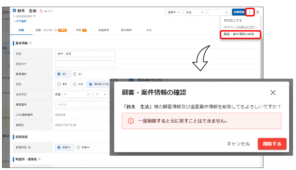 ※追客(顧客)の削除は管理者アカウントのみ可能です。